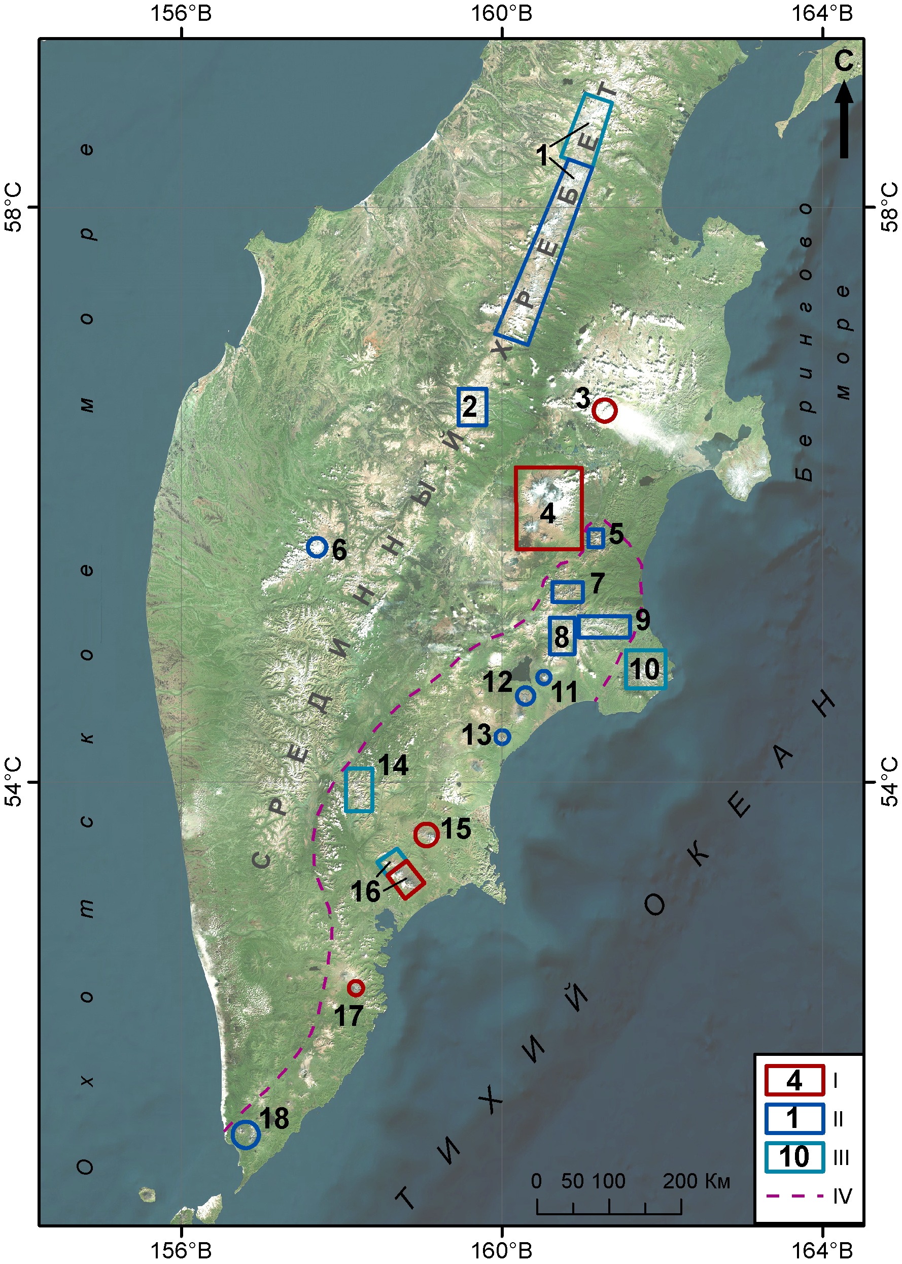 4. Рис. 1. Районы оледенения Камчатки